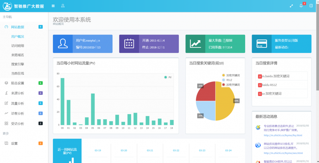 新需求,經(jīng)過智馳科技技術(shù)及客服人員的全力協(xié)作,于2018年3月15日,隆重推出:網(wǎng)站推廣大數(shù)據(jù)系統(tǒng)。以下是推廣大數(shù)據(jù)的登錄頁面: