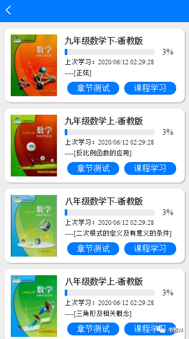 課程列表頁簡單顯示課程進度以及上次學習情況