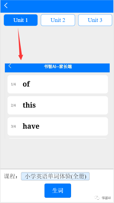 2.2目前AI單詞速記課程 可以查看單元生詞。
