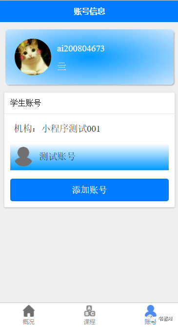 1.2.2 已經綁定學生賬號時,就會顯示學生概況。包含頭像,名稱,
